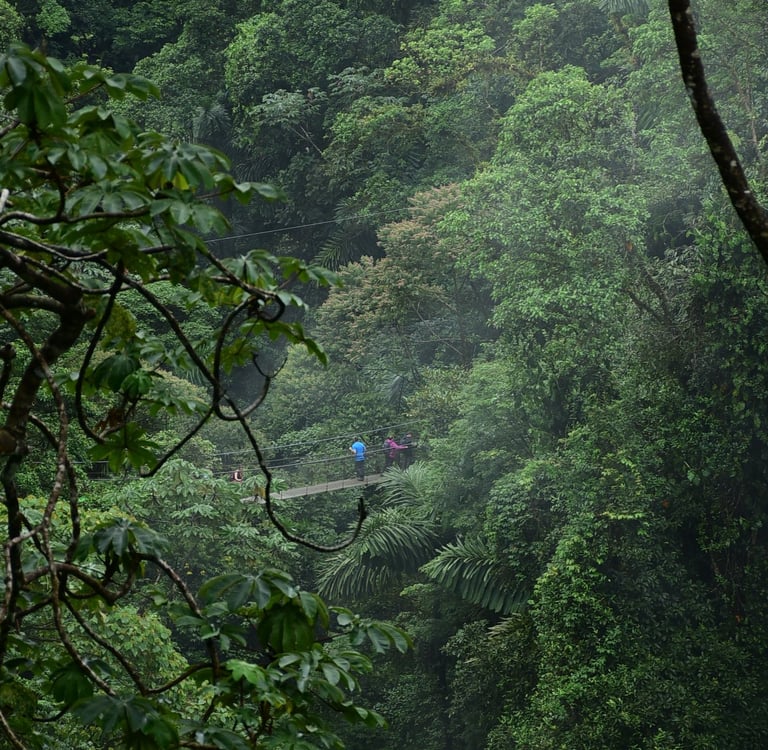 We depart early in the morning for a scenic drive through the Guanacaste Mountain Range, enjoying beautiful landscapes and views of Lake Arenal. Our first stop is Mistico Hanging Bridges Park, where you will enjoy a guided hike (1.5–2 hours) through the rainforest. Along the trail, you may spot sloths, monkeys, and tropical birds while walking across impressive hanging bridges.